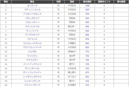 今年の上位ランキングはキズナ産駒が人気みたいだメェ~~!